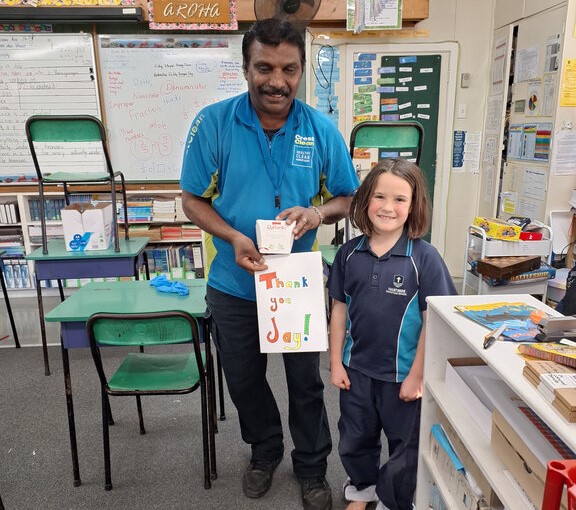 “It was really special to see the kids thank Jay for his work whilst he was thanking them for making his job easier. A few kids gave him hugs and told me that he’s the best cleaner,” she says.