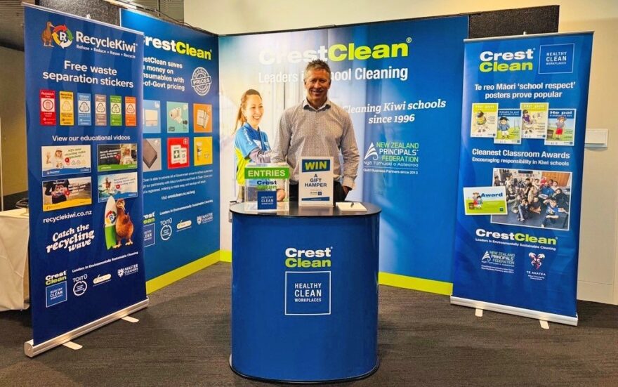 The Wellington team recently spent two busy days connecting with school leaders at the Wellington Regional Primary Principals’ Association Conference (WRPPA), held at the iconic Te Papa Museum. Wellington Regional Managers Adrian and Kylie Cashmore set up a vibrant and welcoming CrestClean booth and enjoyed catching up with principals and